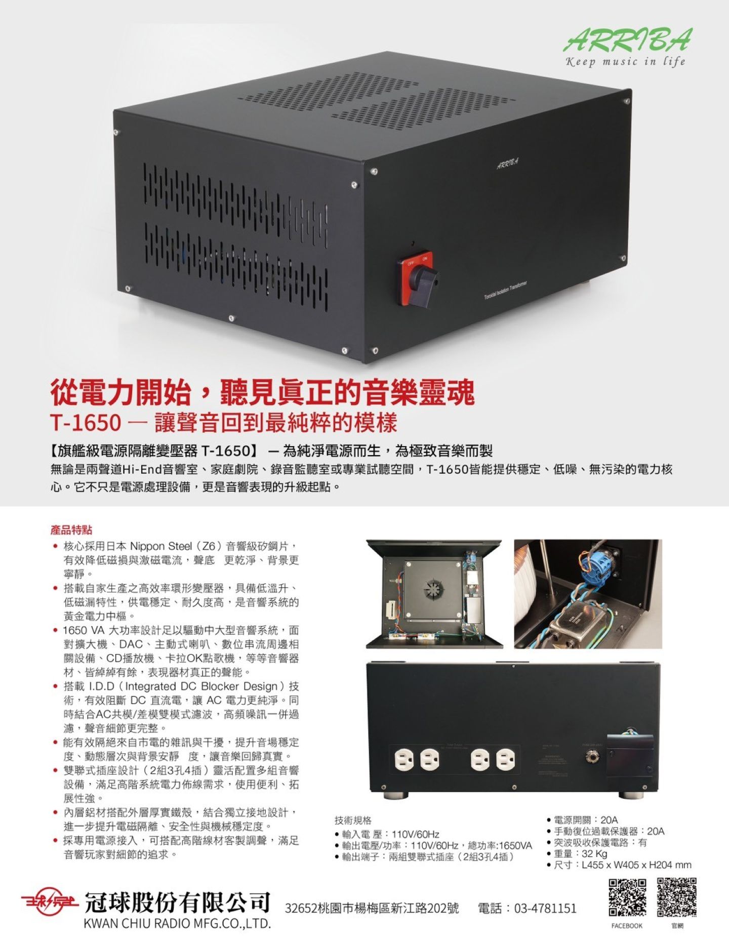 ARRIBA T-1650 隔離變壓器 多到安全設計 電力滿載也不怕